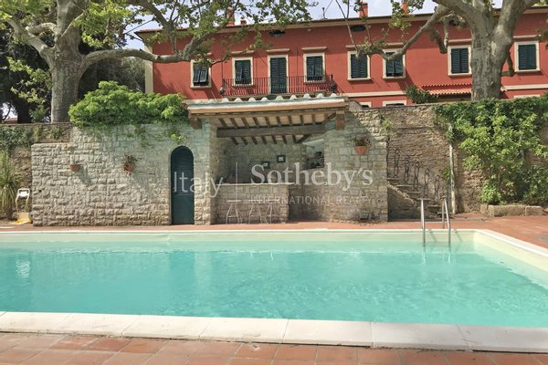 Wunderschönes Landhaus mitten auf dem Land von Pisa, nur 20 km vom Meer entfernt. Die Hauptvilla ist von einem Park mit jahrhundertalten Bäumen umgeben und ist ein Kloster aus 1200. In den Jahren hat sich viel geändert, mit den letzten Restaurierung hat sie die heutige Form bekommen. Die Immobilie entwickelt sich auf mehreren Ebenen rund um einen großen Saal, der sich bis zur Decke mit einer schönen Holz-Galerie entwickelt. Im Erdgeschoss gibt es einen 42 qm Saal mit großen Fenstern, Küche, Esszimmer, Bibliothek, zwei Badezimmer, Speisekammer, Keller und Wäscherei. Im ersten Stock gibt es das Schlafzimmer mit Badezimmer und begehbarem Kleiderschrank, sowie 5 Schlafzimmer, mit einigem privatem Badezimmer, Spielraum und Bar-Ecke. Im oberen Stock gibt es ein zusätzliches Schlafzimmer mit privatem Badezimmer. Die Immobilie verfügt über 50 Hektar Grundstück, von denen 21 Hektar Weinberg sind. Schließlich gibt es eine Kapelle, einen Parkplatz und einen Pool.