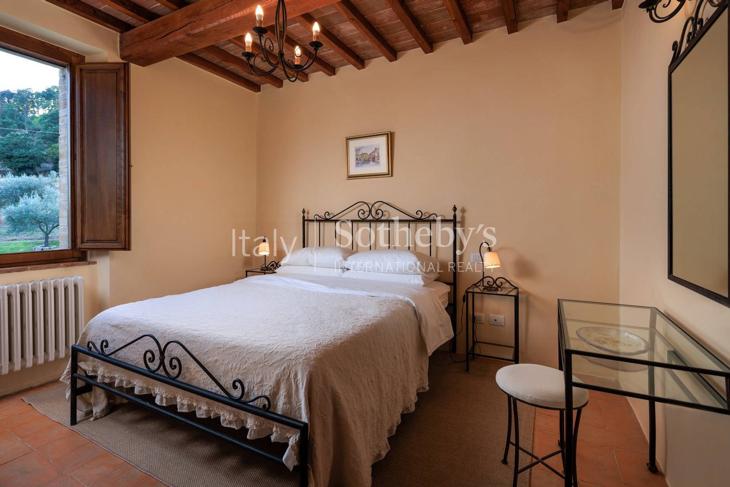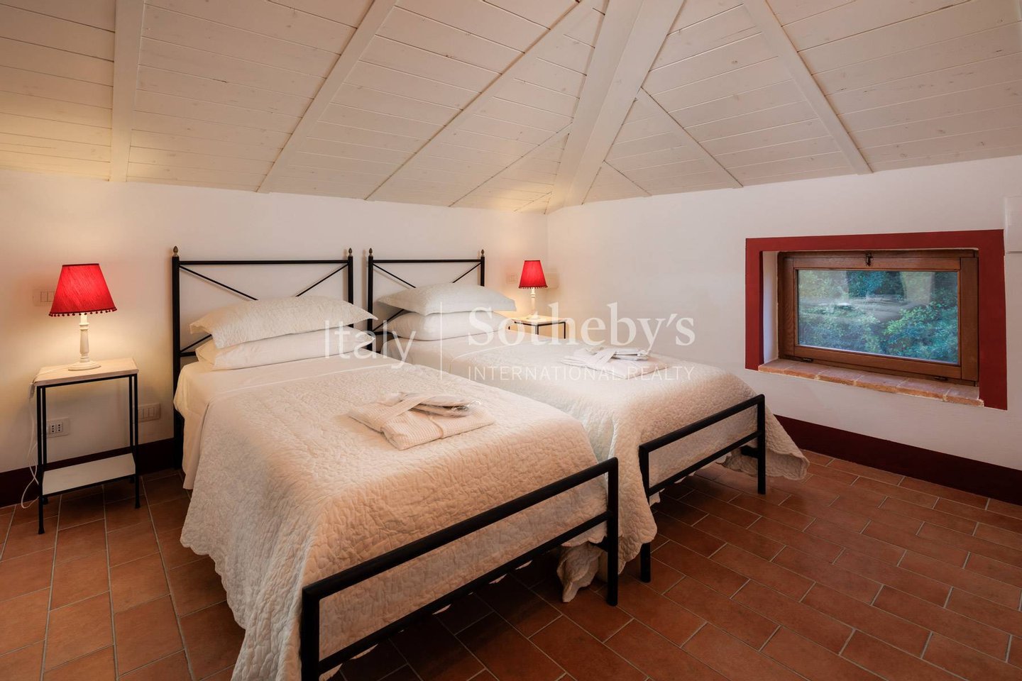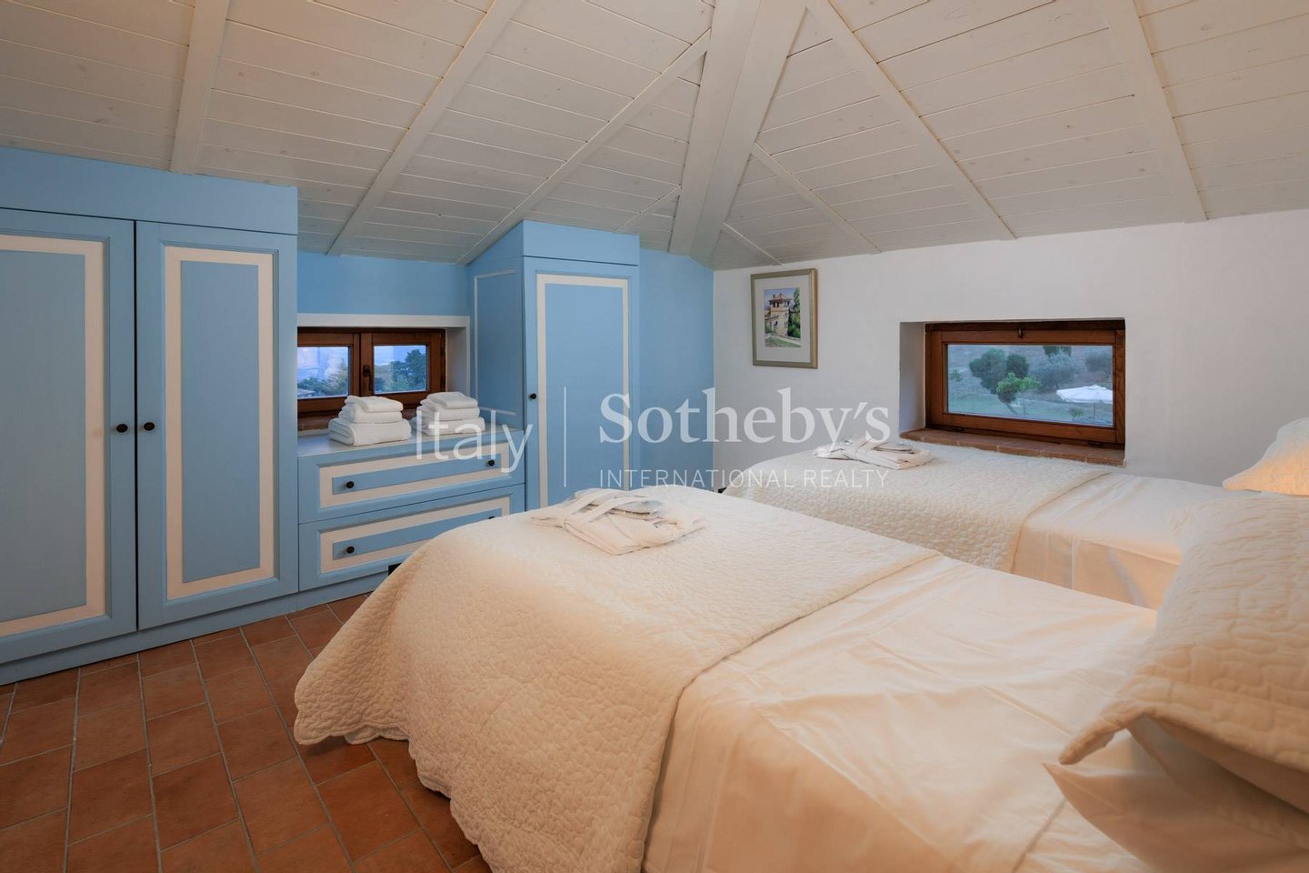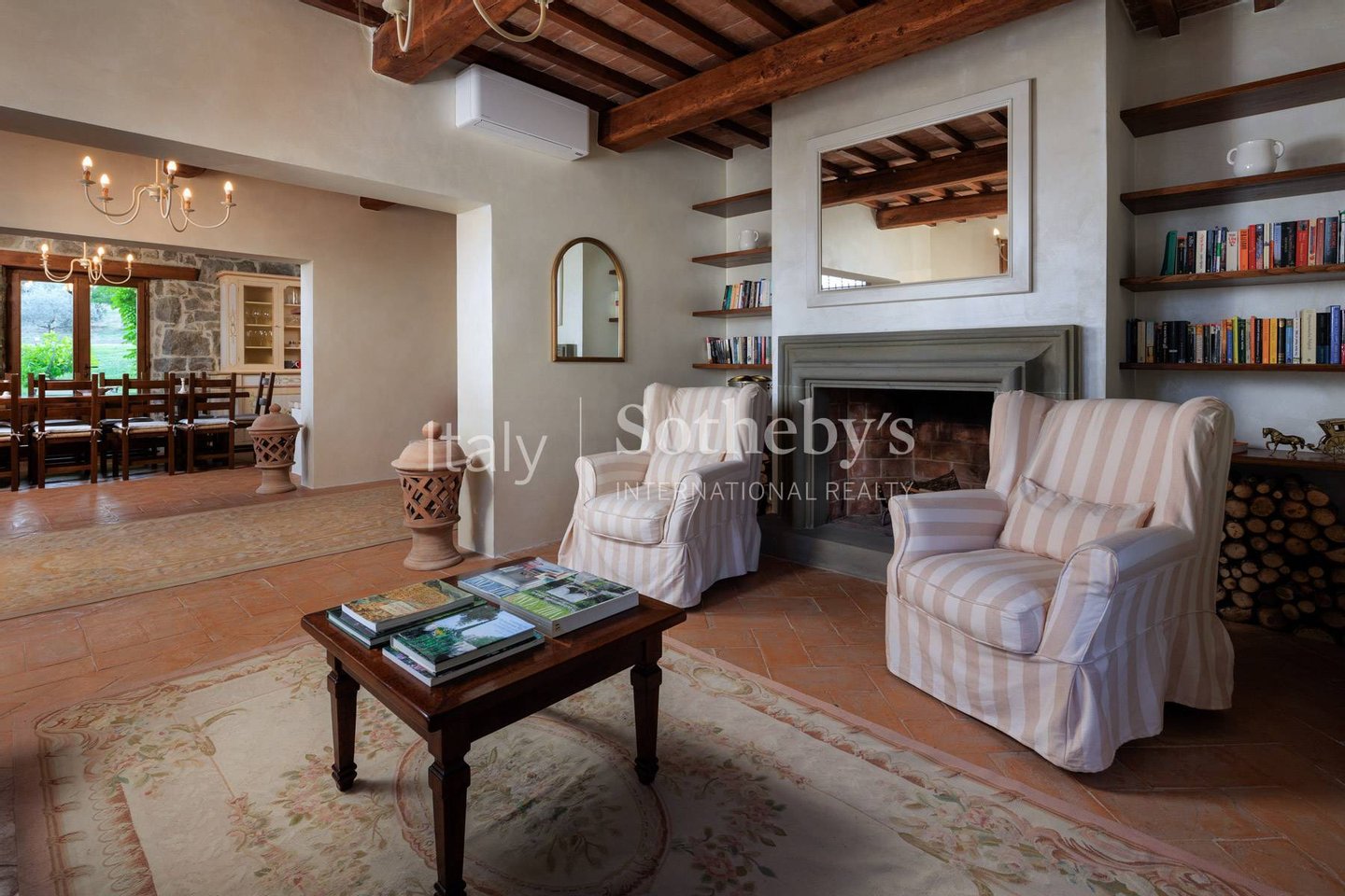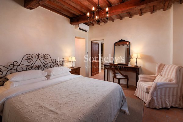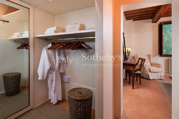 The entrance opens onto the living room with fireplace, to continue into the laundry area and pantry while on the pool side there is a large dining area and the kitchen, with another fireplace; from here you access the outdoor pergola that creates a cool and shaded area ideal for hot summer days. On the ground we find terracotta floors while on the ceiling wooden beams; each stone tells the story of this property that today guarantees comfort and light. On the first floor there are four bedrooms, two with en-suite bathroom, and an additional bathroom for the other two bedrooms; on the second floor instead there is a large living area dedicated to reading, a bedroom with en-suite bathroom; two more bedrooms, a bathroom in addition to the boiler room.