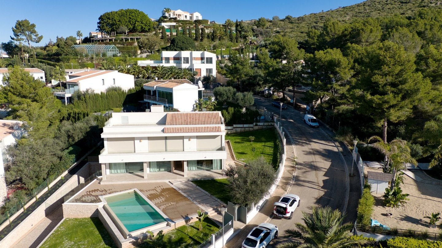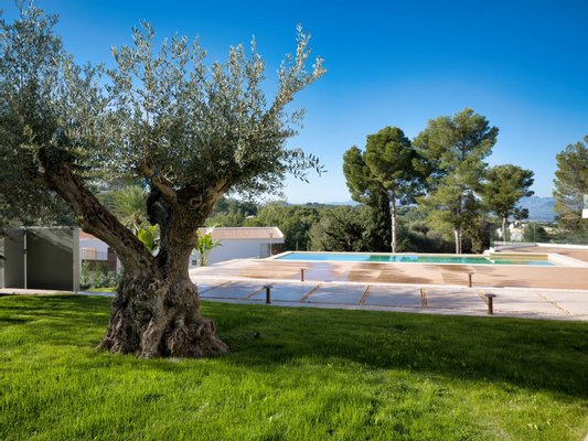 Im Kellergeschoss (148 m²) erwarten Sie eine Garage für 6 Fahrzeuge, eine separate Wohnung mit komplettem Bad, eine Waschküche und zusätzlicher Stauraum. Das Erdgeschoss (135 m²) bietet ein großes und helles Wohnzimmer mit Gaskamin und direktem Zugang zu den Terrassen, ein raffiniertes Esszimmer, eine Hauptküche mit hochwertigen Geräten, einen integrierten Weinkeller, eine sekundäre Küche, eine Gästetoilette und einen direkten Zugang zur Terrasse und den Gärten. Der Salzwasser-Swimmingpool ist umgeben von mediterranen Pflanzen und Olivenbäumen und verfügt über eine automatische Bewässerungsanlage.