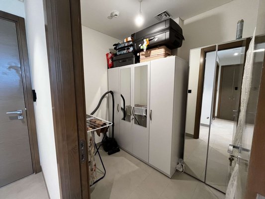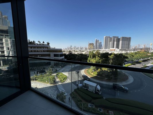 Treten Sie ein in dieses elegante, geräumige Apartment mit einem Schlafzimmer und genießen Sie die herrliche Aussicht auf die Umgebung von Sobha Hartland Waves. Mit einer Wohnfläche von 59 Quadratmetern, einem Balkon und einem Abstellraum bietet