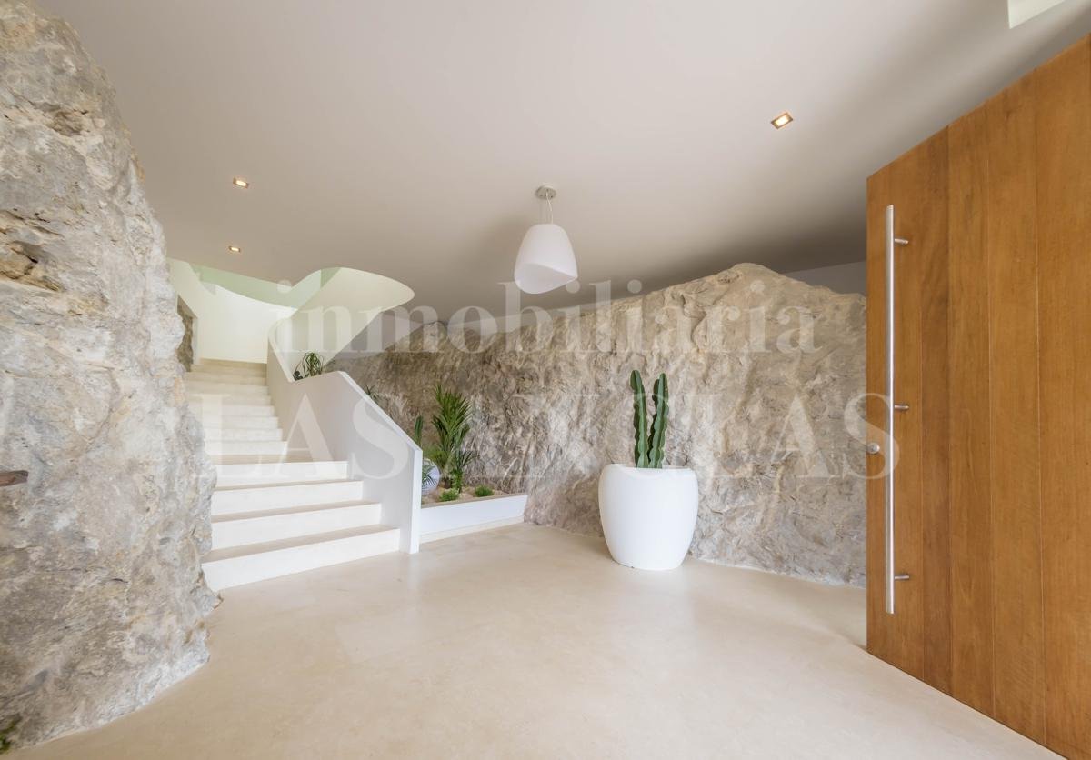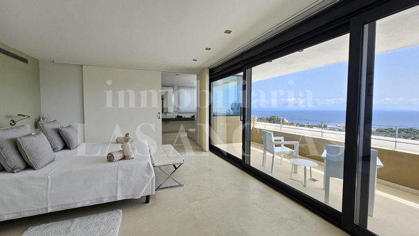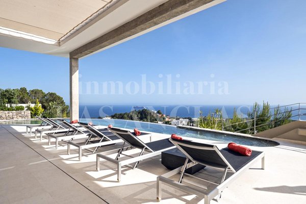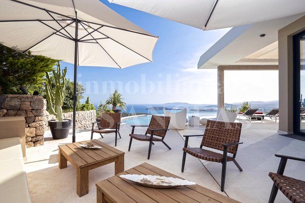 In einer der exklusivsten Gegenden der Insel, in der Nähe des Strandes Talamanca und des Yachthafens Marina Botafoch, befindet sich diese luxuriöse Designervilla mit einer touristischen Vermietungslizenz und einem spektakulären 180º-Panoramablick auf das Meer, den Hafen, die Altstadt von Ibiza und Formentera, die ihresgleichen sucht.