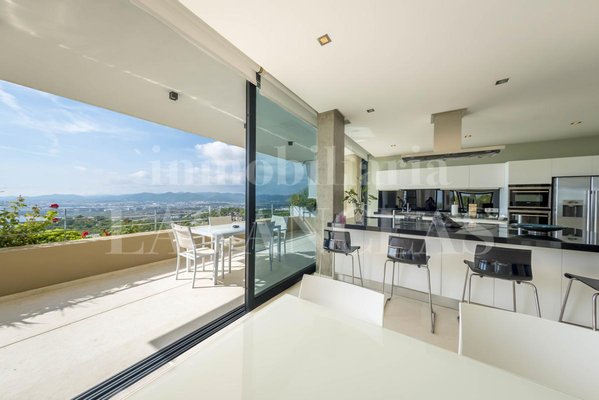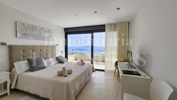 In einer der exklusivsten Gegenden der Insel, in der Nähe des Strandes Talamanca und des Yachthafens Marina Botafoch, befindet sich diese luxuriöse Designervilla mit einer touristischen Vermietungslizenz und einem spektakulären 180º-Panoramablick auf