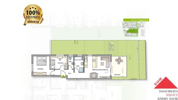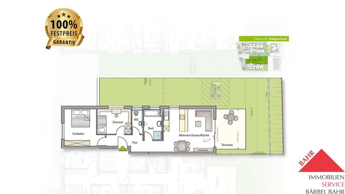 - Schöne Terrasse mit 85 m² großem Gartenanteil