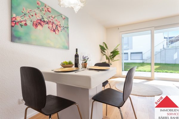 Diese charmante 3-Zimmer-Wohnung im Erdgeschoss mit offener Wohnküche, einem schönen Garten und einer sonnigen Terrasse nach Süden lädt zum Entspannen ein.