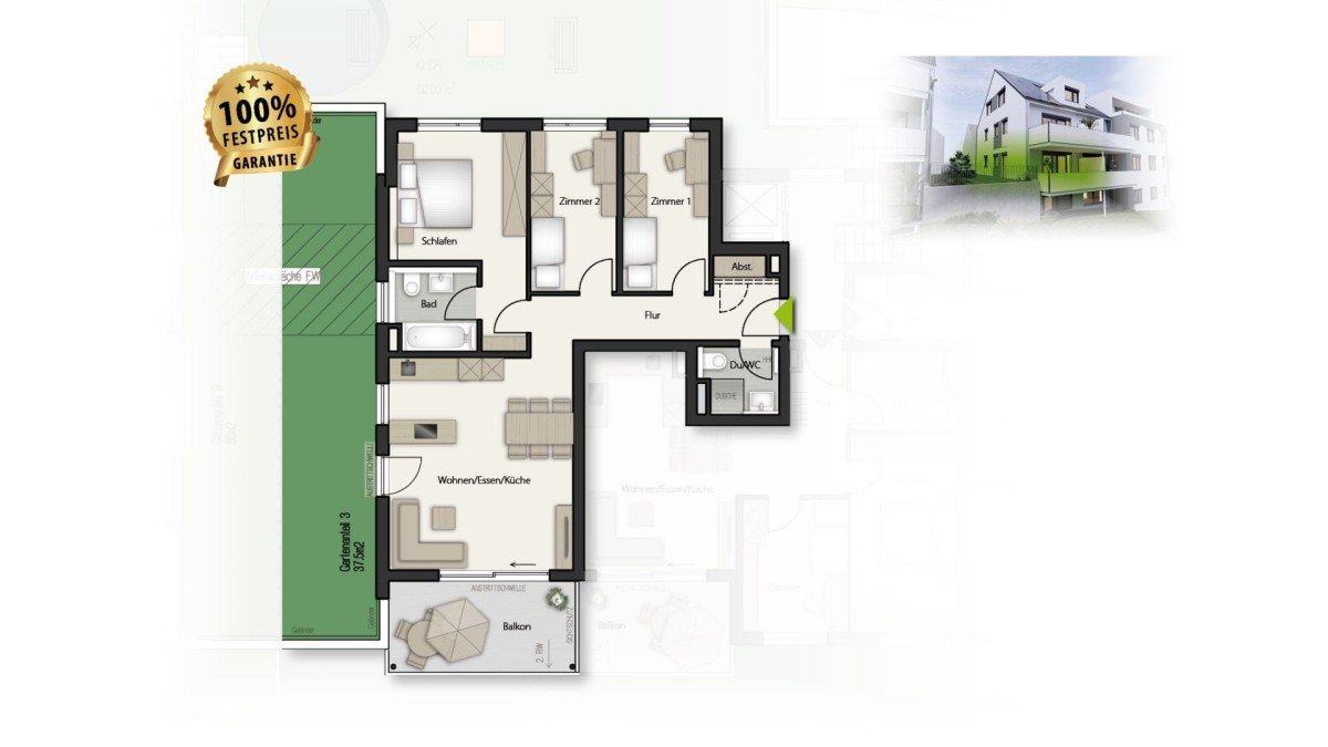 - Eigener Gartenanteil (ca. 37,5 m²)