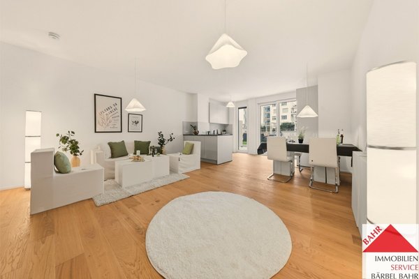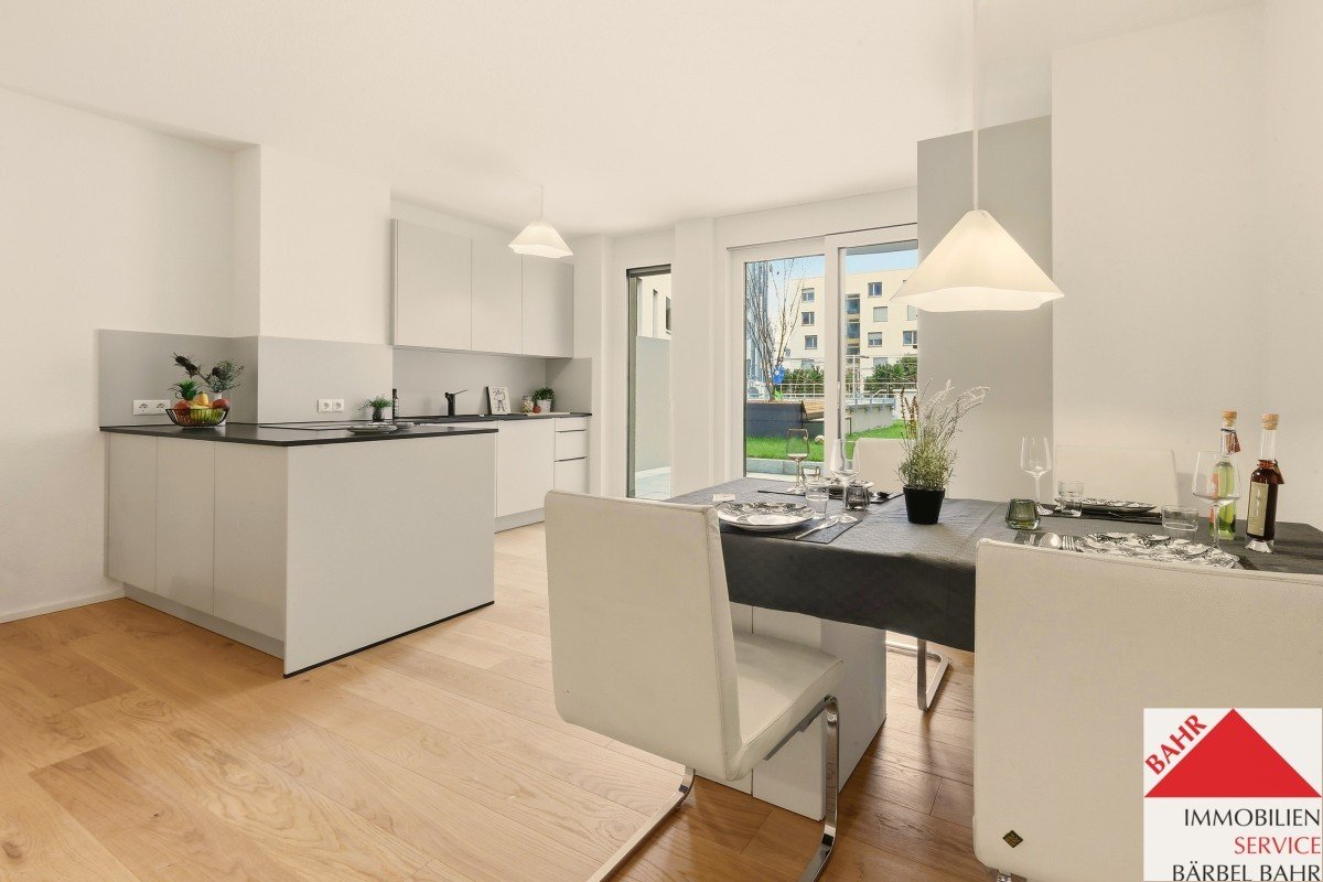 Die 4-Zimmer-Wohnung im 1. Obergeschoss bietet durch die optimale Raumaufteilung selbst einer vierköpfigen Familie ein gemütliches Zuhause. Das Zentrum der Wohnung und Treffpunkt für die ganze Familie ist der offen und modern gestaltete Wohn-/Essbereich mit einer offenen Küche und einer großen Terrasse. Hier können Sie herrliche Sonnenstunden genießen.