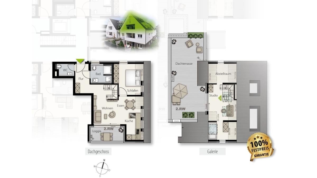 Auf der oberen Galerie-Ebene befindet sich ein lichtdurchflutetes Studio, das sich hervorragend als großzügiges Arbeitszimmer oder für Ihr Hobby nutzen lässt. Mit dem angrenzenden Abstellraum haben Sie zusätzlichen Stauraum, der Ihnen hilft, alles geordnet und aufgeräumt zu halten. Ein besonderes Highlight ist die großzügige Dachterrasse – Ihr privater Außenbereich mit Blick ins Grüne, perfekt für sonnige Stunden und entspannte Abende unter freiem Himmel.
