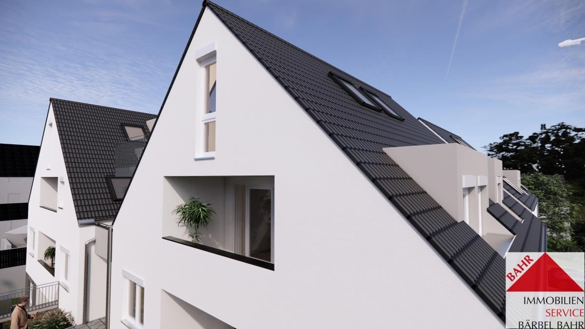 Das moderne Badezimmer mit bodengleicher Dusche sorgt für zusätzlichen Komfort und rundet das durchdachte Raumkonzept ab. Diese Maisonette-Wohnung bietet alles, was Sie sich von einem modernen Zuhause wünschen.