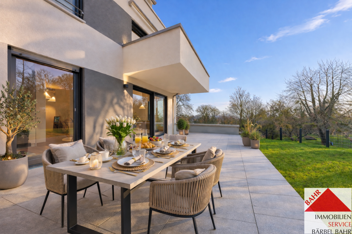 Die großzügige Terrasse und der weitläufige Garten werden zur eigentlichen Erweiterung Ihres Wohnraums.