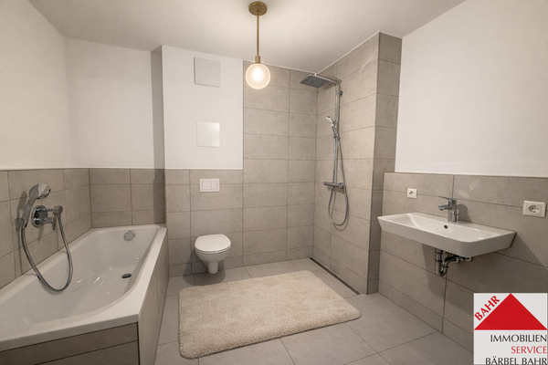 - Bad mit Badewanne, bodengleich gefliester Dusche & Waschmaschinenanschluss