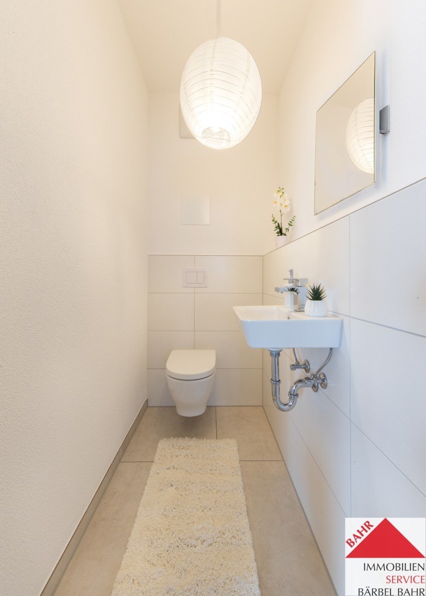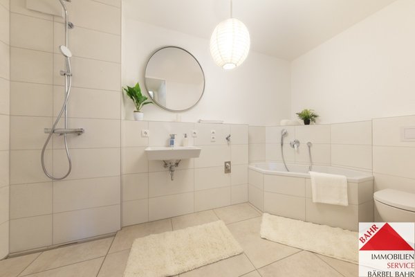 - Bad mit Badewanne, bodengleich gefliester Dusche und Waschmaschinenanschluss