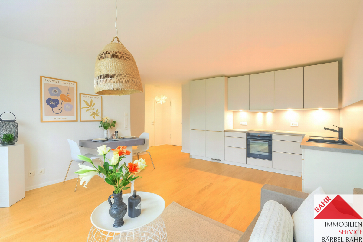 Die Wohnung ist sofort startklar: Eine schicke Einbauküche ist bereits vorhanden – das spart Ihnen Zeit und bares Geld beim Einzug. Das stilvolle Tageslichtbad überzeugt mit einer bodengleichen Dusche inklusive moderner Glasduschkabine. Für behagliche Wohnatmosphäre sorgen die Fußbodenheizung und elektrische Rollläden.