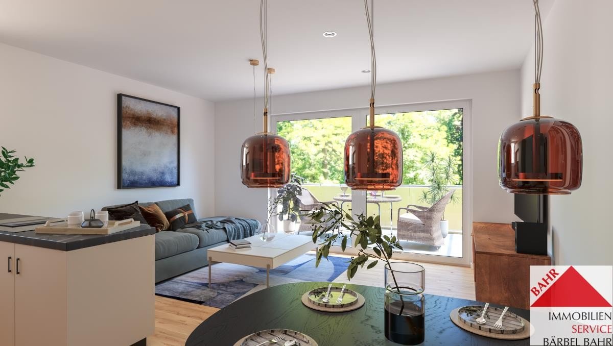 Hier werden Sie sich wohlfühlen. Das Wohn-/ Esszimmer mit offener Küche und direktem Zugang zum Südbalkon wird der Treff- und Mittelpunkt der Wohnung werden.