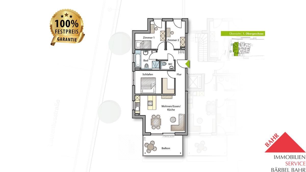 Im Schlafzimmer erwartet Sie ein praktischer Ankleidebereich. Zwei weitere geräumige Zimmer bieten flexible Nutzungsmöglichkeiten – Ideal für Ihre Kinder, Enkel, Gäste oder als Home Office. Ein modernes Tageslichtbad mit bodengleicher Dusche sowie einer einladenden Badewanne und ein separates WC vervollständigen Ihr neues Zuhause.
