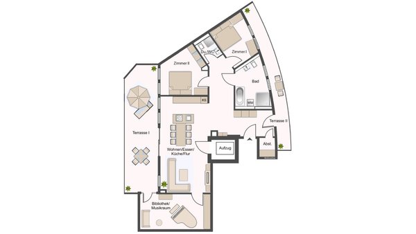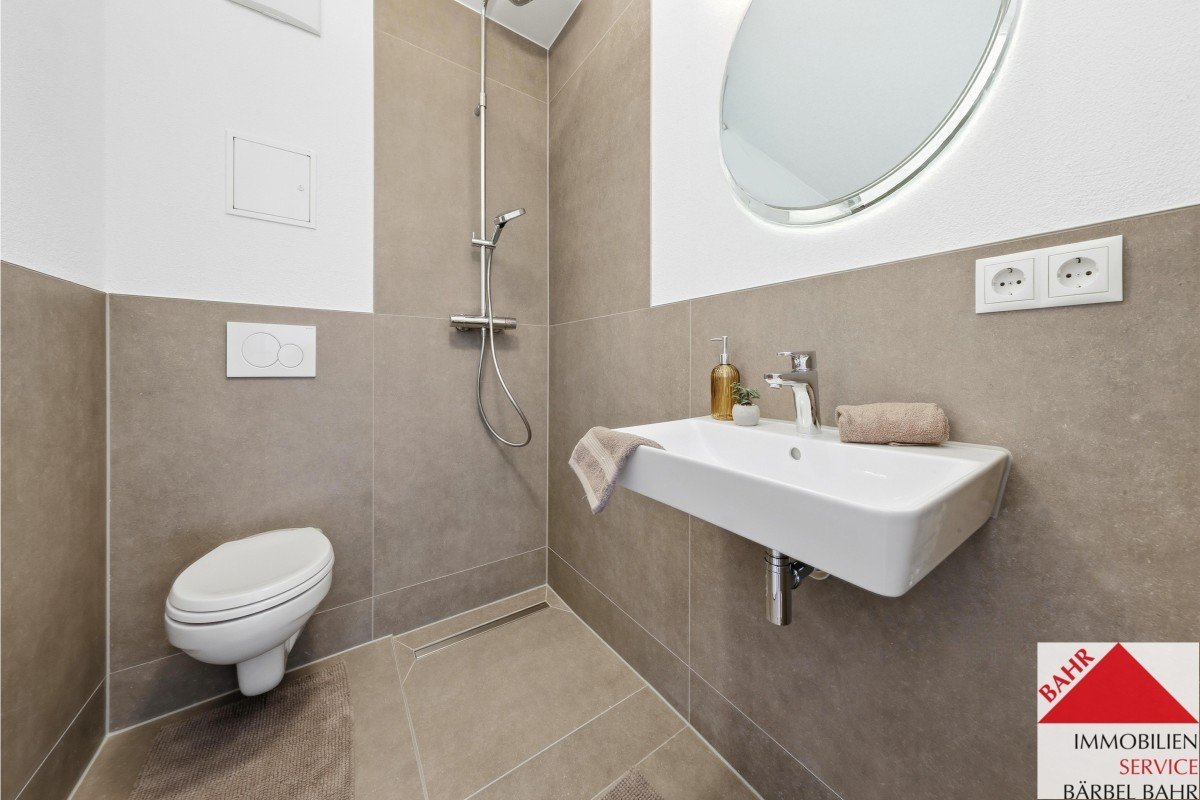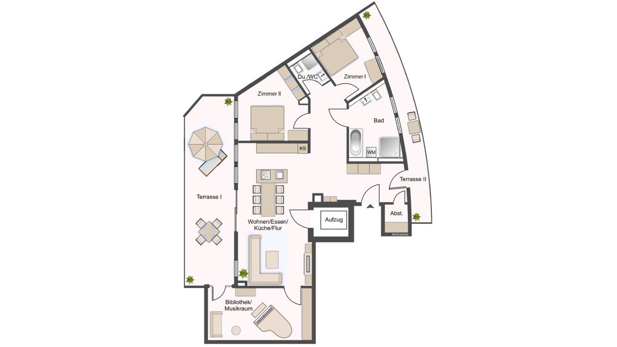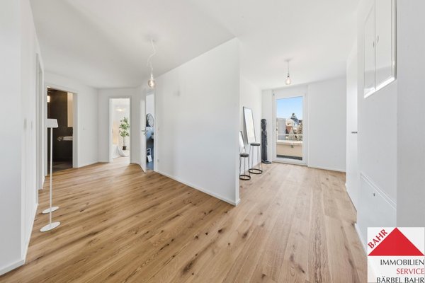 Das Zentrum der Wohnung bildet der ca. 40m² große, luftige Wohn-/ Essbereich mit integrierter offener Küche und der herrlichen Dachterrasse. Das Schlafzimmer, zwei extragroße Kinderzimmer, ein großes Bad, separates Gäste WC undein Abstellraum in der Wohnung runden das Angebot ab. Eine weitere Umlauf-Terrasse sorgt für viel Freiheit und ungetrübte Aussicht.