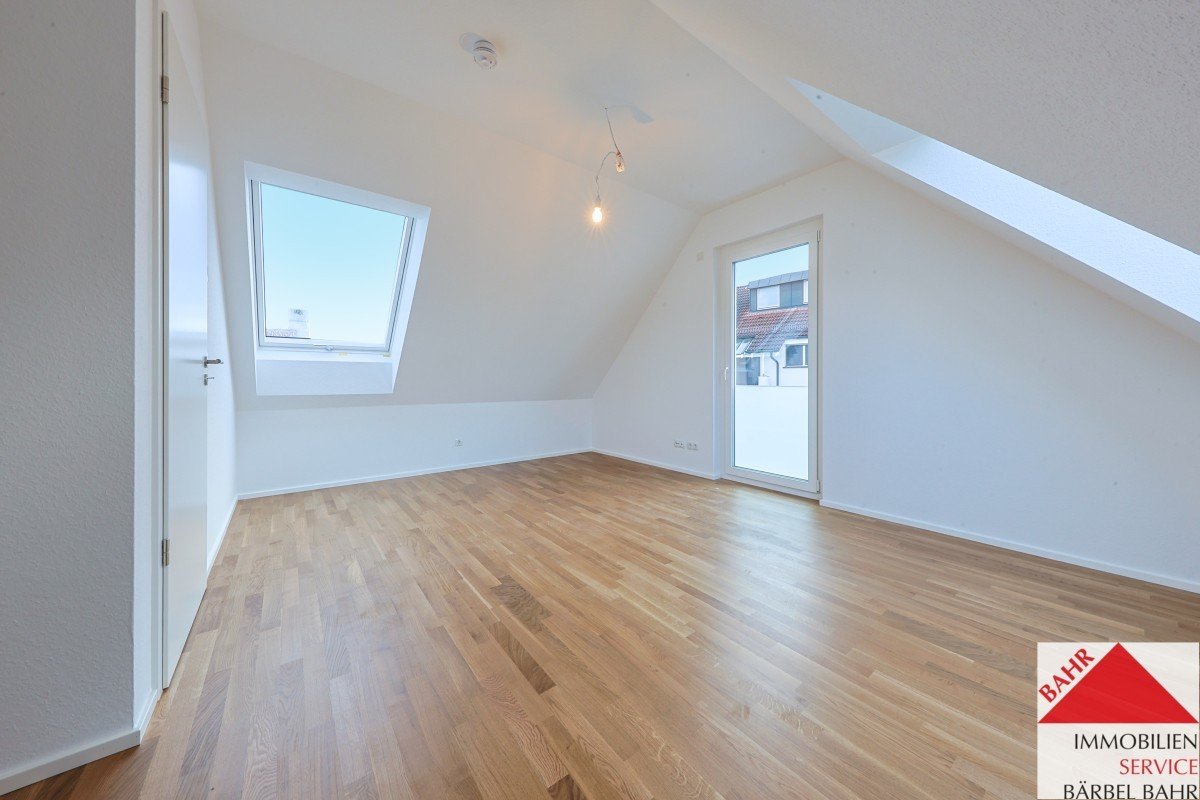 Im unteren Bereich erwarten Sie ein heller Wohn-/Essbereich mit offener Küche, ein Schlafzimmer und ein Tageslichtbad mit Badewanne. Von hier aus gelangen Sie auf die sonnige Dachterrasse – perfekt für entspannte Stunden im Freien.