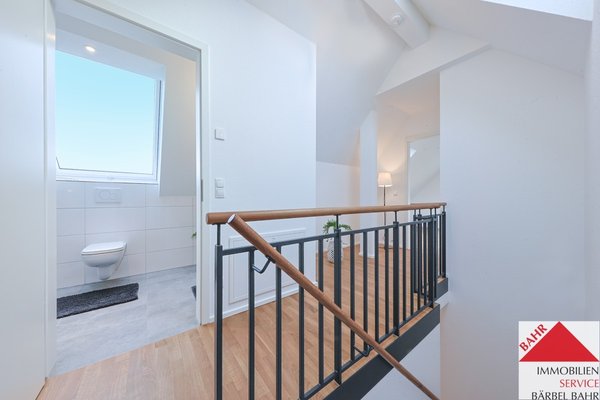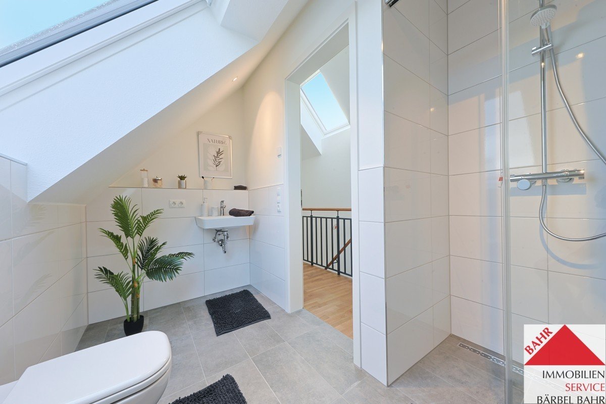 Die Galerie im oberen Geschoss eröffnet Ihnen vielfältige Möglichkeiten: Ob Schlafzimmer, Home-Office, Gäste- oder Hobbyraum – hier gestalten Sie Ihren persönlichen Rückzugsbereich. Ein weiteres Tageslichtbad mit bodengleicher Dusche sorgt für zusätzlichen Komfort und macht diese Etage zu einer komplett eigenständigen Wohnebene.