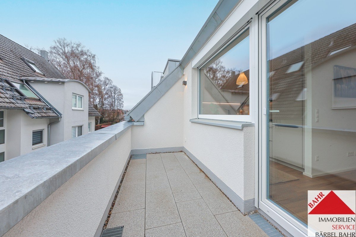 Im unteren Bereich erwarten Sie ein heller Wohn-/Essbereich mit offener Küche, ein Schlafzimmer und ein Tageslichtbad mit Badewanne. Von hier aus gelangen Sie auf die sonnige Dachterrasse – perfekt für entspannte Stunden im Freien.