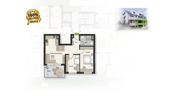 In dieser smart aufgeteilten 3-Wohnung finden vor allem Singles & Paare ihr neues Zuhause.