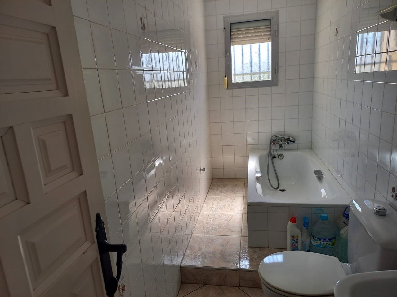 das Erdgeschoss mit 4 Schlafzimmern, 1 Badezimmer mit Wanne, 1 Esszimmer, 1 Einbauküche, 1 Balkon, 1 überdachten Terrasse vor dem Eingang und 2 von außen zugängliche Abstellräume sowie