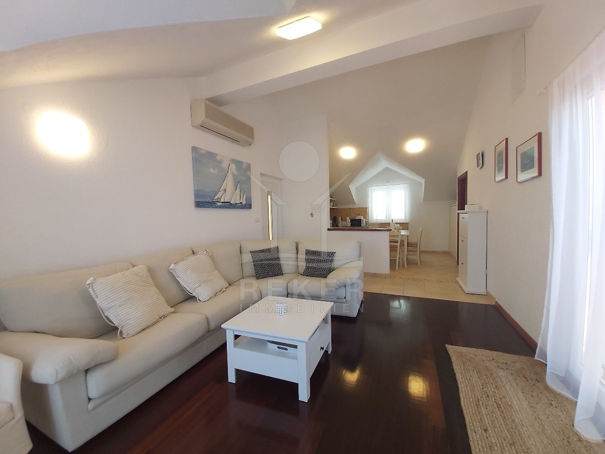 Entdecken Sie das ultimative Strandleben in diesem exklusiven Mehrfamilienhaus in der Nähe von Trogir! Mit drei separaten Wohnungen bietet dieses einzigartige Anwesen die perfekte Lösung für große Familien oder clevere Investoren in der touristischen
