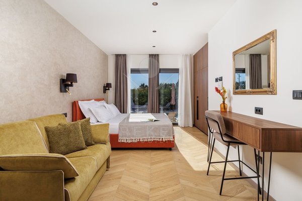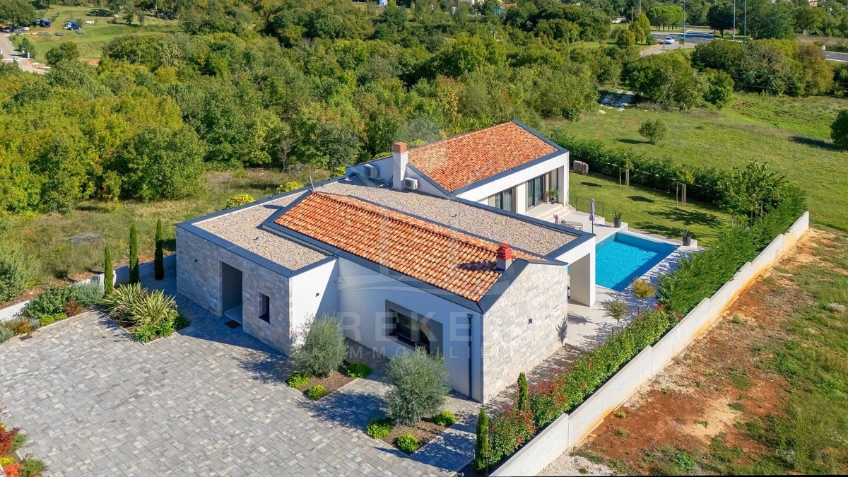 Die beeindruckende Villa befindet sich in der Nähe des malerischen Rovinj, das an der Westküste der Region Istrien liegt. Umgeben von einer traumhaften Landschaft und nur 11 km vom Meer und den wunderbaren Stränden entfernt, bietet diese Lage die perfekte Balance zwischen Ruhe und Nähe zur Urbanität. Die charmante Stadt Rovinj ist bekannt für ihre pulsierende Uferpromenade und die romantische Altstadt, wo Sie das venezianische Erbe der Stadt hautnah erleben können – all dies ist nur 10 km entfernt.