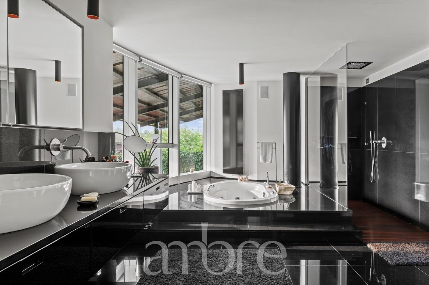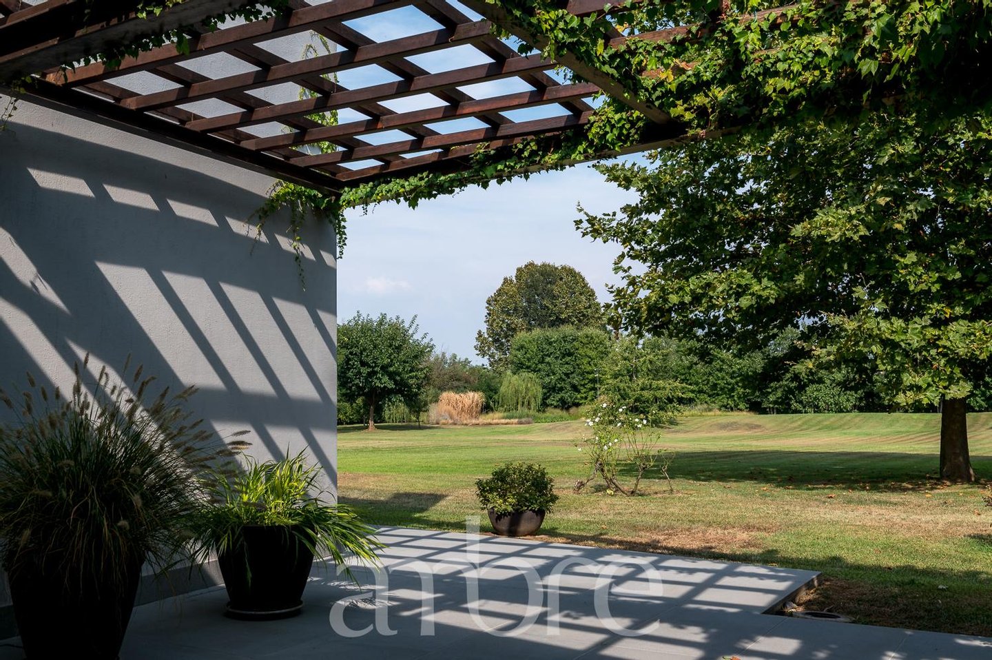 Wir präsentieren einen bemerkenswerten Komplex moderner Villen, wunderschön gelegen in einer ruhigen Enklave, etwas außerhalb der geschäftigen Stadt Mailand. Dieses außergewöhnliche Anwesen, das 2010 fertiggestellt wurde, bietet eine harmonische Verschmelzung von zeitgenössischem Design und fortschrittlichen Technologien und ist eine Hommage an das traditionelle architektonische Erbe der Lombardei. Das Anwesen erstreckt sich über eine große Fläche von 1.000 Quadratmetern und besteht aus drei verschiedenen Residenzen. Die 420 Quadratmeter große Hauptvilla, die sich über drei Ebenen erstreckt, ist ein Meisterwerk des modernen Wohnens und bietet luxuriöse Räume, die auf Komfort und Stil ausgelegt sind. Eine Zweitwohnung mit 200 Quadratmetern vielseitiger Wohnfläche auf drei Etagen steht bereit, individuell gestaltet zu werden, so dass zukünftige Eigentümer eine Innenaufteilung erstellen können, die sich perfekt in ihren Lebensstil einfügt. Darüber hinaus sorgt ein 80 Quadratmeter großes Hausmeisterhaus für Komfort und Privatsphäre bei der Hausverwaltung. Das Anwesen befindet sich in einem 1,5 Hektar großen, sorgfältig gepflegten Garten und bietet eine ruhige Umgebung, die sich ideal zum Entspannen im Freien und zur Unterhaltung im Sommer eignet. Es besteht auch die Möglichkeit einer Erweiterung mit einem angrenzenden 4.000 Quadratmeter großen Grundstück, das zur Entwicklung bereit ist und ein erhebliches Investitionspotenzial aufweist. Der majestätische Eingang der Villa begrüßt Sie durch eine private Auffahrt, die zu einem charmanten Innenhof führt, der mit floralen Akzenten geschmückt ist. Im Inneren offenbart sich das Erdgeschoss in einem außergewöhnlichen offenen Grundriss mit einem Dreibett-Wohnbereich, der mit einem eleganten, modernen Kamin ausgestattet ist, zwei Essbereichen, einer hochmodernen Küche mit zentraler Insel und einem elegant eingerichteten Gästebad. Im Obergeschoss befindet sich eine opulente Master-Suite mit privater Sonnenterrasse, einem eigenen Badezimmer mit Doppelwaschbecken, einem Whirlpool und einer Erlebnisdusche. Ein maßgefertigter begehbarer Kleiderschrank, der die doppelte Höhe erreicht und über zwei Treppen bedient wird, sorgt für einen Hauch von Raffinesse. Auf dieser Etage befinden sich auch ein Gästezimmer mit eigenem Bad und ein zusätzlicher vielseitiger Raum mit Zugang zu einer weiteren privaten Terrasse. Für Gesundheits- und Wellnessbegeisterte bietet die untere Etage eine Reihe von Annehmlichkeiten, darunter einen Fitnessraum, eine Waschküche und einen Spa-Bereich, der für eine Sauna, ein Dampfbad und einen Innenpool mit Gegenstromanlage für ein luxuriöses Entspannungserlebnis konzipiert ist. Eine Garage mit einer Kapazität für bis zu 15 Fahrzeuge unterstreicht die Zweckmäßigkeit und Bequemlichkeit des Anwesens. Diese Villa stellt eine seltene Gelegenheit dar, eine tadellos gestaltete und gebaute Residenz zu erwerben, in der jedes Detail ein Engagement für luxuriöses Wohnen in einer der begehrtesten Regionen Italiens widerspiegelt.