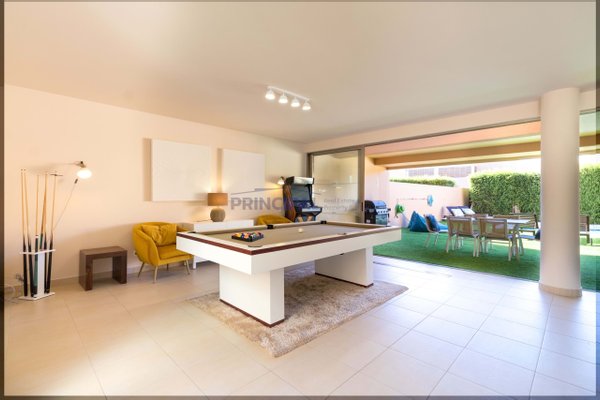 Modernes Stadthaus mit privatem Außenpool, Parkplätzen mit direktem Zugang zum Inneren des Hauses und in privilegierter Lage am Meer, nur wenige Gehminuten vom Strand entfernt. Das Hotel liegt in einer geschlossenen Wohnanlage mit Überwachung, Autopförtner und Rezeption.