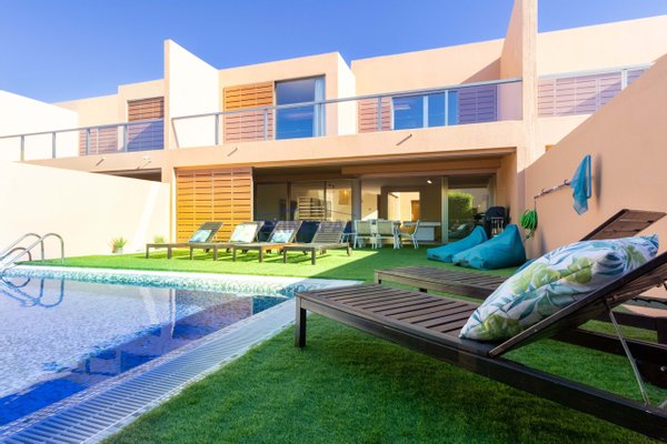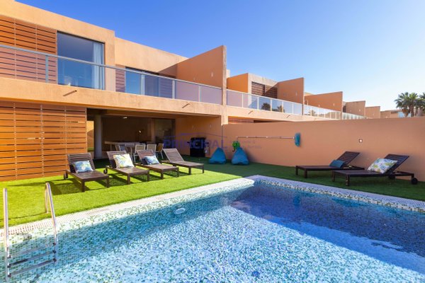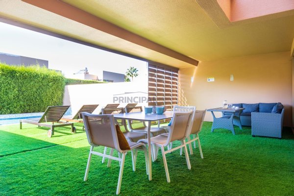 Modernes Stadthaus mit privatem Außenpool, Parkplätzen mit direktem Zugang zum Inneren des Hauses und in privilegierter Lage am Meer, nur wenige Gehminuten vom Strand entfernt. Das Hotel liegt in einer geschlossenen Wohnanlage mit Überwachung,