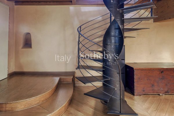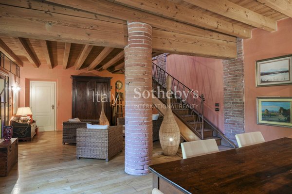 Die Einheit verfügt über Massivholzböden, restaurierte originale Putzwände und Steinakzente.