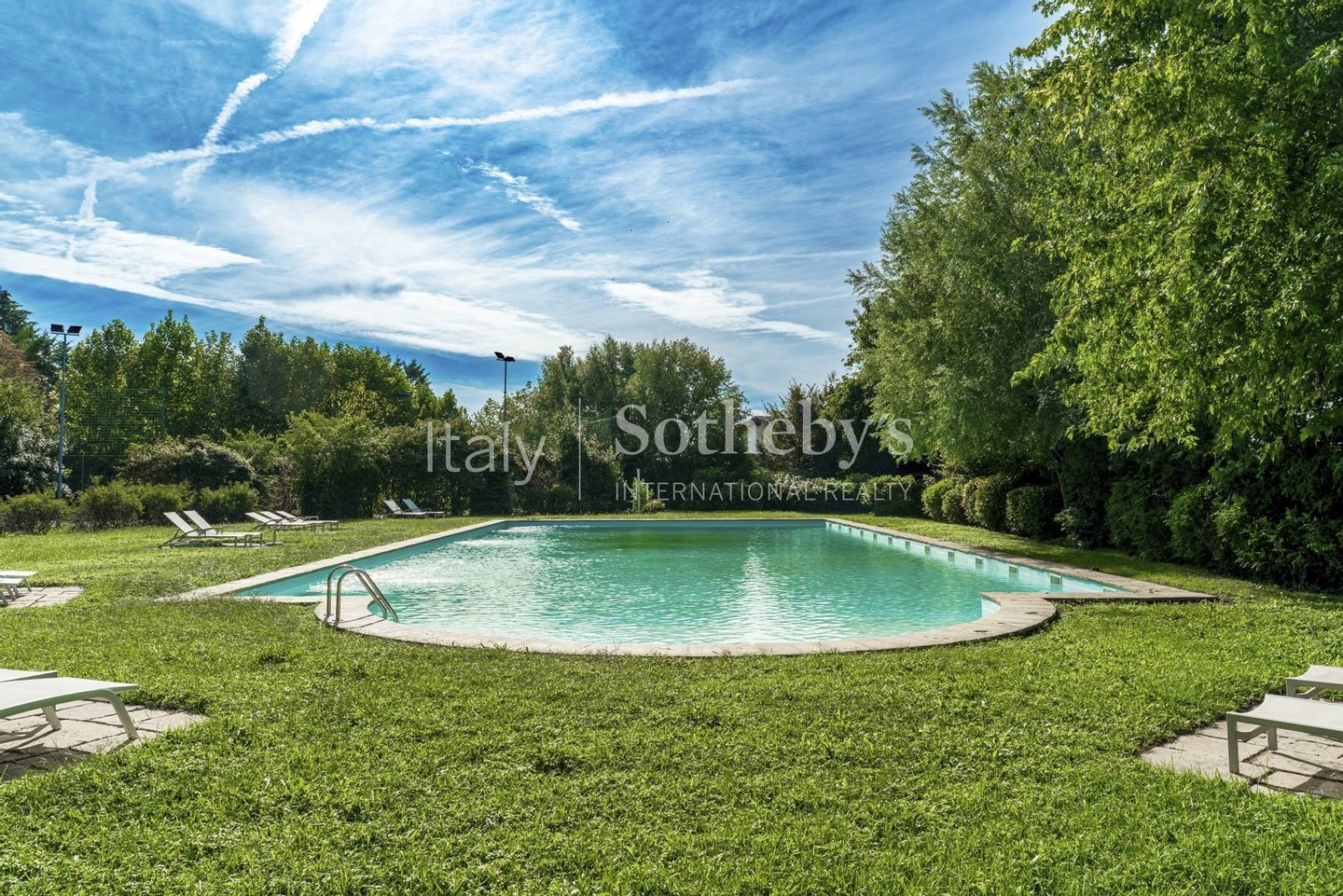 Die Wohnanlage ist von Grünflächen umgeben und bietet Gemeinschaftsbereiche wie ein olympisches Schwimmbecken, einen Tennisplatz, einen Fitnessraum mit Whirlpool und Sauna.