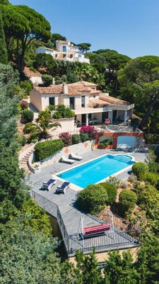 Im Herzen des Viertels Semaphore in dominanter Lage mit freiem 180-Grad-Blick auf die gesamte Bucht von Saint Tropez befindet sich das 1987 erbaute und 2014 komplett renovierte prächtige Anwesen mit 245 m2 auf einem 2.020 m2 großen Grundstück mit