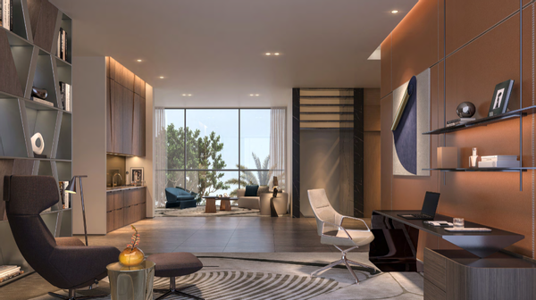 Sie betreten das luxuriöse Apartment durch den weitläufigen Essbereich mit offener Showküche und Wohnzimmer mit Blick auf das Meer. Hier finden Sie außerdem ein geräumiges Gästezimmer, einen Hauswirtschaftsraum sowie ein Dienstzimmer und ein Fahrerzimmer mit separatem Zugang.