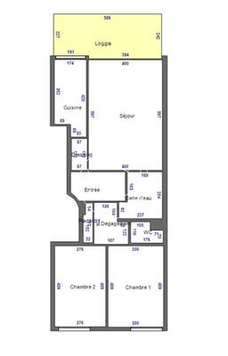 Die Wohnung besteht aus einem Eingangsbereich, einem Wohn- und Esszimmer, das auf eine geräumige Loggia führt, einer halboffenen Küche, zwei schönen Schlafzimmern, einem Duschbad und einer separaten Toilette.
