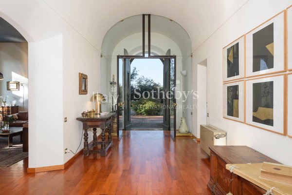 Auf den Überresten einer römischen Domus errichtet, wurde die Villa in den 1980er Jahren von dem japanischen Architekten Kazuhiro Takahama elegant restauriert. Seine Vision interpretierte das Anwesen meisterhaft neu und verband die Renaissance-Eleganz mit der Schlichtheit und Raffinesse asiatischer Architektur. Die Restaurierung bewahrte die ursprüngliche Struktur mit ihrer klassischen, symmetrischen Grundrissgestaltung entlang einer zentralen Achse und ihrer Verbindung zum Garten. Dabei wurden die Helligkeit verbessert und historische Elemente wie Bögen, Gewölbe und venezianische Stuckaturen durch subtile Monochromie und modern neu gestaltete Details hervorgehoben.