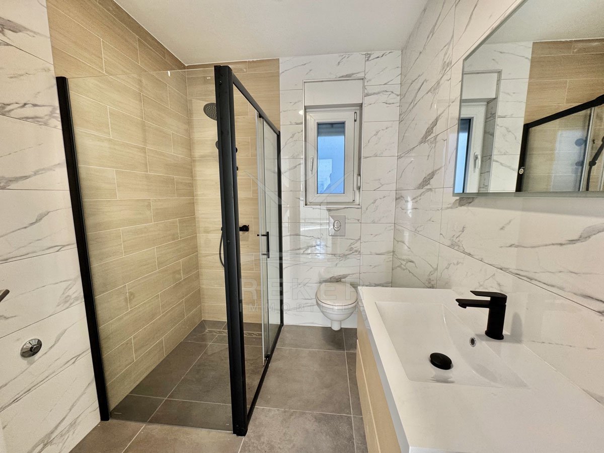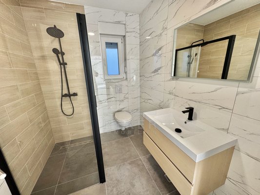 Diese moderne 3-Zimmer-Erdgeschosswohnung im Hochparterre eines hochwertigen Neubaus bietet Ihnen die perfekte Kombination aus Komfort und Stil. Nur wenige Schritte vom Meer entfernt, genießen Sie die Vorteile einer zentralen Lage, die Ihnen unmittelbaren Zugang zur Strandpromenade und den schönsten Stränden der Umgebung eröffnet. Zusätzlich erleben Sie den Luxus eines Außenparkplatzes, der Ihren Aufenthalt noch bequemer macht. Ob für den eigenen Rückzugsort oder als ideale Ferienimmobilie – dieser Neubau vereint alles, was Sie sich von einem Leben an der kroatischen Küste wünschen.