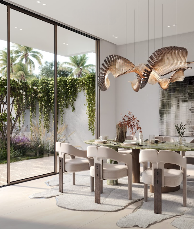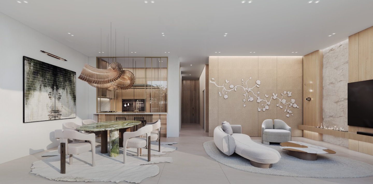 Ein majestätischer Eingangsbereich mit einer Eingangstür in voller Höhe und einem intelligenten Schlosssystem heißt Sie willkommen. Die doppelte Höhe des Garnier-Empfangssaals bei den 6-Schlafzimmer-Villen verleiht dem Raum eine wahrhaft königliche Note. Kristallelemente im Interieur setzen strahlende Akzente und sorgen für ein luxuriöses Ambiente.