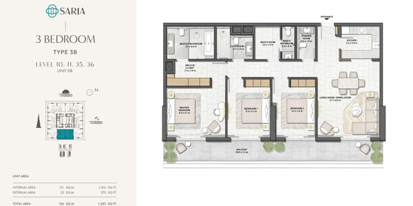 Willkommen in Ihrem neuen Zuhause! Betreten Sie die modern gestaltete Lobby und spüren Sie sofort die Luxus-Atmosphäre, die Sie umgibt. Hier erwartet Sie ein exklusives 3-Schlafzimmer-Apartment, das alles bietet, was Sie für ein komfortables und stilvolles Wohnen benötigen.