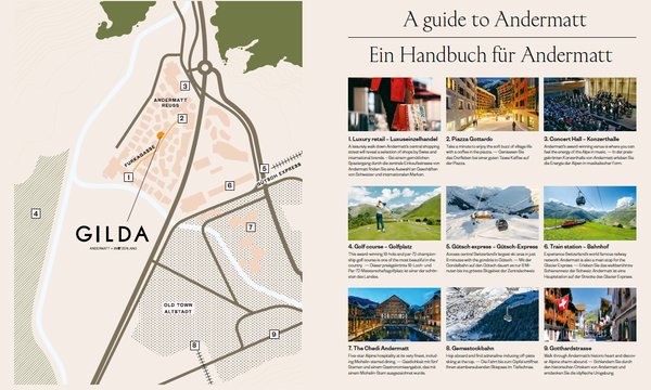 Treten Sie ein in ein mondänes Schweizer Alpendorf inmitten einer märchenhaften Berglandschaft, in dem inspirierende Abenteuer auf Sie warten (drinnen und draußen). Andermatt lädt Sie ein, unberührte Skipisten zu erkunden, auf dem preisgekrönten Meisterschaftsplatz zu golfen und durch sonnige Alpwiesen zu den nahe gelegenen Wäldern und Wasserfällen zu wandern. Im Innenbereich können Sie Freunde in einer schicken Boutique, einem dampfenden Spa oder einem mit einem Michelin-Stern ausgezeichneten Restaurant treffen.