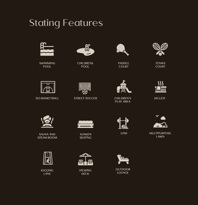 Die Joggingbahn lädt zu einem morgendlichen Lauf ein, während die Aussichtsplattform einen atemberaubenden Blick über die Umgebung bietet. Zum Ausruhen und Entspannen lädt die Outdoor-Lounge ein, die perfekt zum Verweilen und Genießen der idyllischen Umgebung ist. Willkommen in Ihrem neuen Zuhause, wo Sie Luxus und Entspannung gleichermaßen finden können.