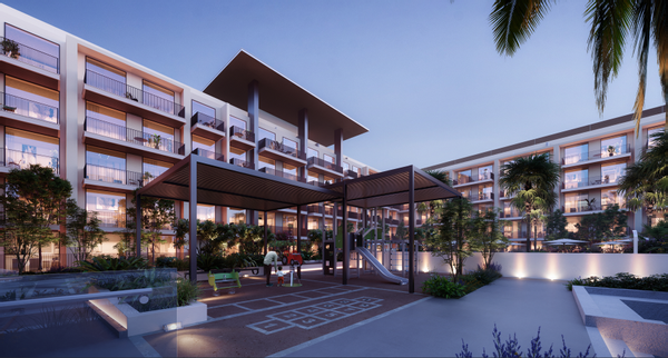 Für die kleinen Bewohner gibt es einen separaten Kid's Play und Pool Bereich, während die Yoga Area für Ruhe und Entspannung sorgt. Genießen Sie gesellige Momente im Sunken Seating und erkunden Sie die umliegenden Retail Outlets.