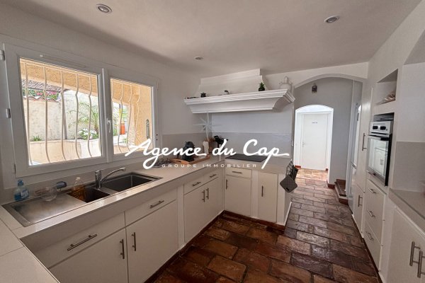 Ruhige Umgebung, in der Nähe des Meeres und der Geschäfte. Schöne provenzalische Villa von ca. 193 m² mit herrlichem Meerblick in Richtung SÜDEN. Es bietet: Eingang, Doppelzimmer von 50 m² mit Kamin, große und schöne amerikanische Küche, die um einen