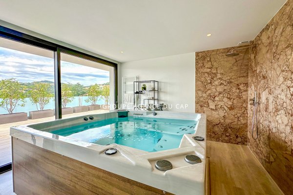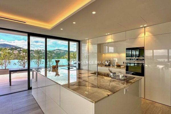 Zu verkaufen: Hervorragendes zeitgenössisches Haus von 330 qm, Baujahr 2022, mit atemberaubendem Blick auf das Meer und Südwestausrichtung für idealen Sonnenschein. Es verfügt über eine 150 m² große Garage, die Platz für bis zu 6 Autos bietet. Das Erdgeschoss bietet 3 Schlafzimmer mit Bad, einen Fitnessraum mit Dusche (der als zusätzliches Schlafzimmer genutzt werden kann) und ein Büro. Im Obergeschoss öffnet sich ein großes Wohnzimmer mit offener Küche von 75 m² auf eine 120 m² große Terrasse mit Meerblick. Ein Jacuzzi-Raum, ein Gäste-WC und ein großes Büro vervollständigen diese Ebene. Im Außenbereich lädt ein herrlich angelegter Garten mit Swimmingpool und automatischer Bewässerung zum Entspannen ein. Das Haus ist außerdem mit einer Klimaanlage, einem 80 cm langen Kriechkeller und einem Aufzug für optimalen Komfort ausgestattet.