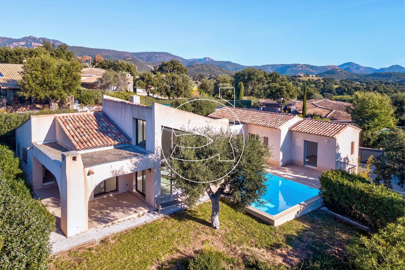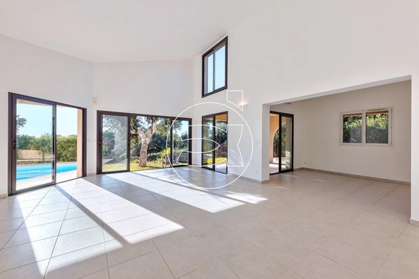 Nach Süden ausgerichtet, bietet sie einen freien Blick auf die Hügel des Esterelgebirges. Dank zahlreicher Fenster und einem großzügigen Wohnbereich profitiert die Villa von außergewöhnlicher Helligkeit und einem schönen Raumgefühl.