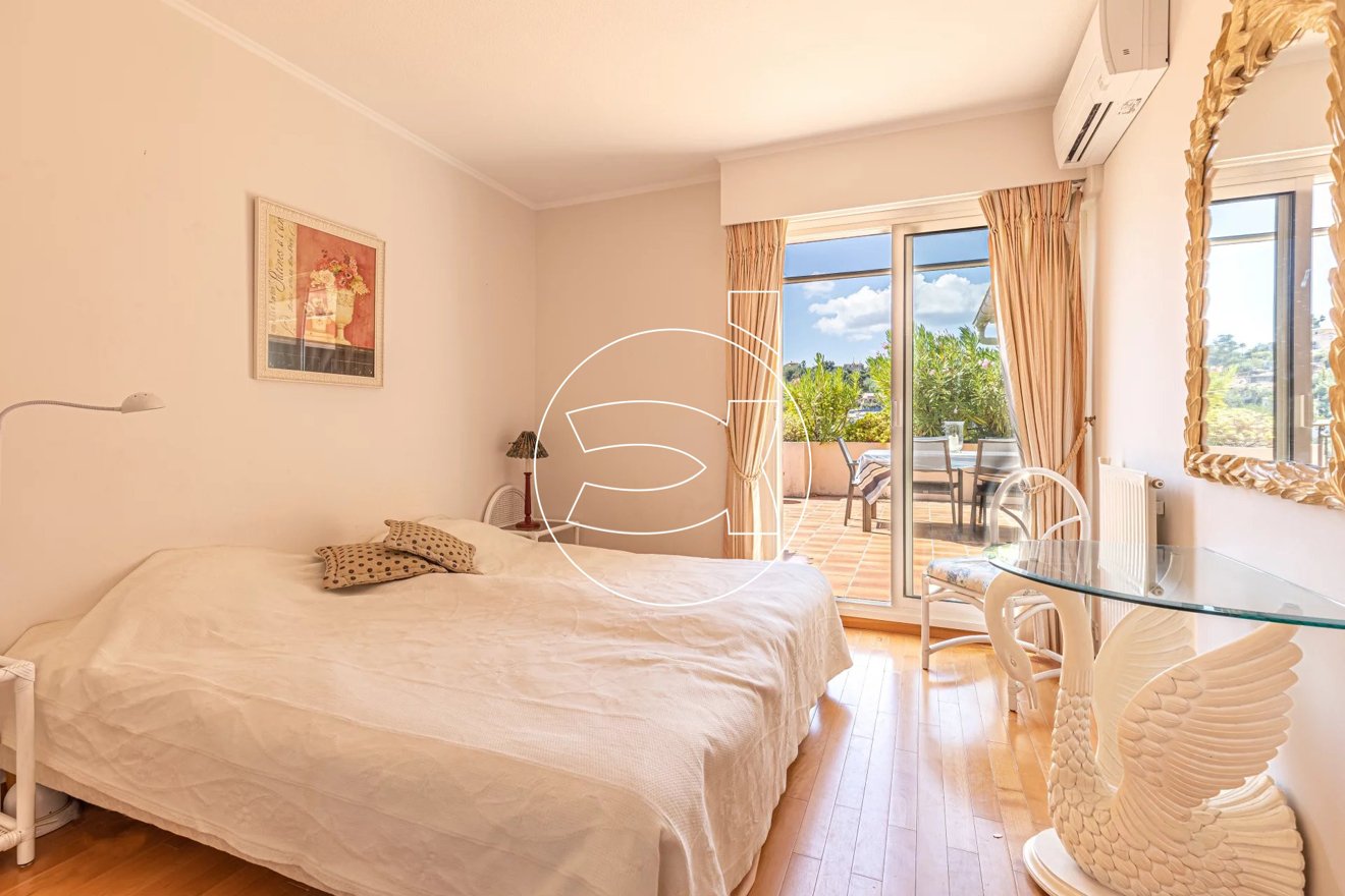 Diese ca. 100 m² große Wohnung befindet sich auf den Höhen von Mandelieu in der prestigeträchtigen und sicheren Domaine de Bellevue, mit Schwimmbad und Tennisplatz.