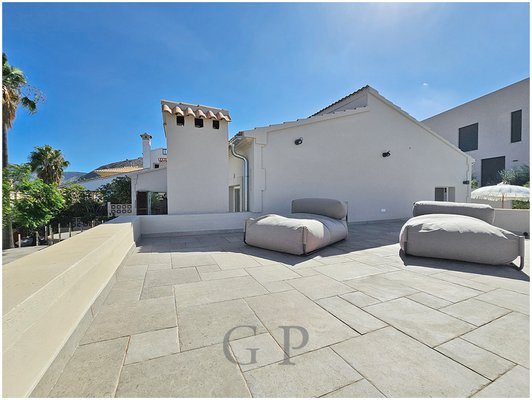 Einige Stufen führen Sie, durch den wunderschön angelegten Garten, zum Eingangsbereich des Hauses. Ein erster Blick auf die große Terrasse, den Hafen, das Meer und die umliegende Hügellandschaft wird Sie direkt begeistern.