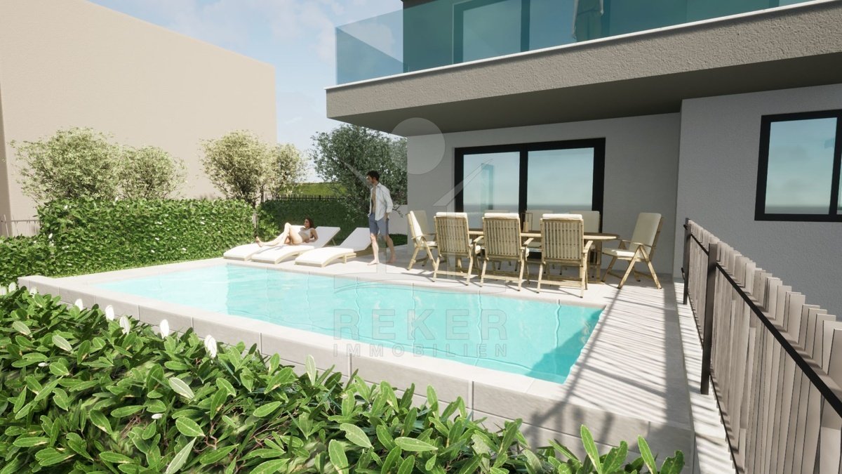 Entdecken Sie Ihr eigenes Stück Paradies mit dieser exklusiven Erdgeschosswohnung auf der malerischen Insel Čiovo, nur wenige Minuten von Trogir entfernt! Hier genießen Sie nicht nur einen eigenen Garten und einen privaten Swimmingpool, sondern auch die hervorragende Lage, die es Ihnen ermöglicht, den Strand und das klare Meer in kürzester Zeit zu erreichen. Diese großzügige Neubauwohnung wird mit hochwertigen Materialien und nach den höchsten Baustandards errichtet und verspricht höchsten Komfort und Stil. Ein Garagenstellplatz sorgt zusätzlich für Ihre Bequemlichkeit. Genießen Sie entspanntes Wohnen in einer Toplage, die sowohl Ruhe als auch die Nähe zu den Annehmlichkeiten der Küstenstadt bietet. Lassen Sie sich von der mediterranen Lebensart verzaubern und genießen Sie den Luxus, den diese Wohnung Ihnen bieten wird!