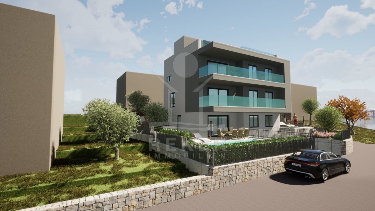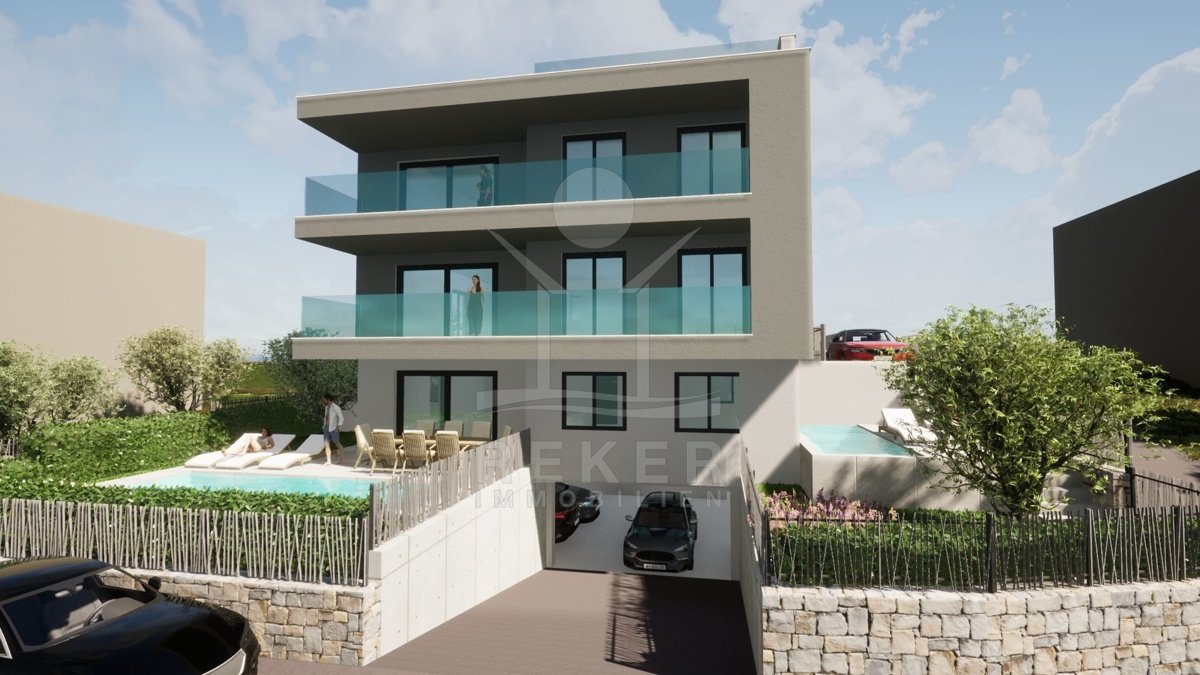 Willkommen in Ihrem neuen Zuhause auf der idyllischen Insel Čiovo bei Trogir! Diese exklusive Etagenwohnung im 1. Stock bietet Ihnen den perfekten Rückzugsort, um das mediterrane Lebensgefühl in vollen Zügen zu genießen. Der großzügige Wohnraum ist ideal für gesellige Abende oder ruhige Momente mit Blick auf den Gartenanteil und den luxuriösen Swimmingpool. Dank der erstklassigen Bauweise und der Verwendung hochwertiger Materialien können Sie sich auf ein komfortables und stilvolles Wohnambiente freuen. Die erstklassige Lage ermöglicht Ihnen es, den Strand und das kristallklare Wasser der Adria in kürzester Zeit zu erreichen. Mit einem eigenen Garagenstellplatz ist auch für Ihre Mobilität gesorgt. Entdecken Sie eine Kombination aus luxuriösem Komfort und der Schönheit Kroatiens – Ihre Traumwohnung erwartet Sie!