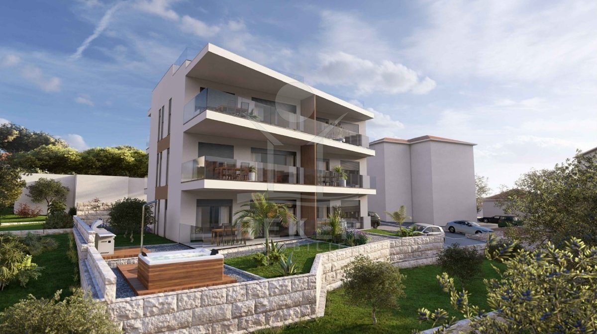 Erleben Sie den Inbegriff von Luxus in diesem exklusiven Penthouse im malerischen Trogir, einem Ort, an dem Urlaubsträume wahr werden! Diese herrliche Neubauwohnung, strategisch in Meernähe und unweit des charmanten Stadtzentrums gelegen, bietet Ihnen den perfekten Rückzugsort. Genießen Sie entspannte Stunden auf Ihrer großzügigen Dachterrasse, während Sie den Blick auf die Adria schweifen lassen oder sich im privaten Whirlpool verwöhnen lassen. Zusätzlich ist ein Parkplatz im Preis inbegriffen, was Ihnen den Komfort und die Bequemlichkeit bietet, die Sie verdienen. Hier erleben Sie den perfekten Mix aus Lebensqualität und Urlaubsflair – der ideale Ort, um das mediterrane Leben in vollen Zügen zu genießen!