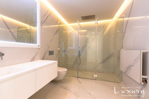 Mit elegantem Interieur und luxuriösen Materialien bietet die Villa eine hochmoderne Fußbodenheizung und -kühlung, die mit Erdwärmeheizung betrieben wird, während reine Holzböden von Vetaparket und hochwertige Dreh-Kipp-Fenster einen unvergleichlichen thermischen Komfort garantieren. Das Oberlicht am Haupteingang, gesteuert von hochmodernen Smartestor Elektrojalousien, durchflutet den Raum mit natürlichem Licht. Das Sicherheitssystem mit Videoüberwachung, das aus 12 Kameras und elektrischen Toren besteht, bietet absolute Ruhe und Sicherheit.